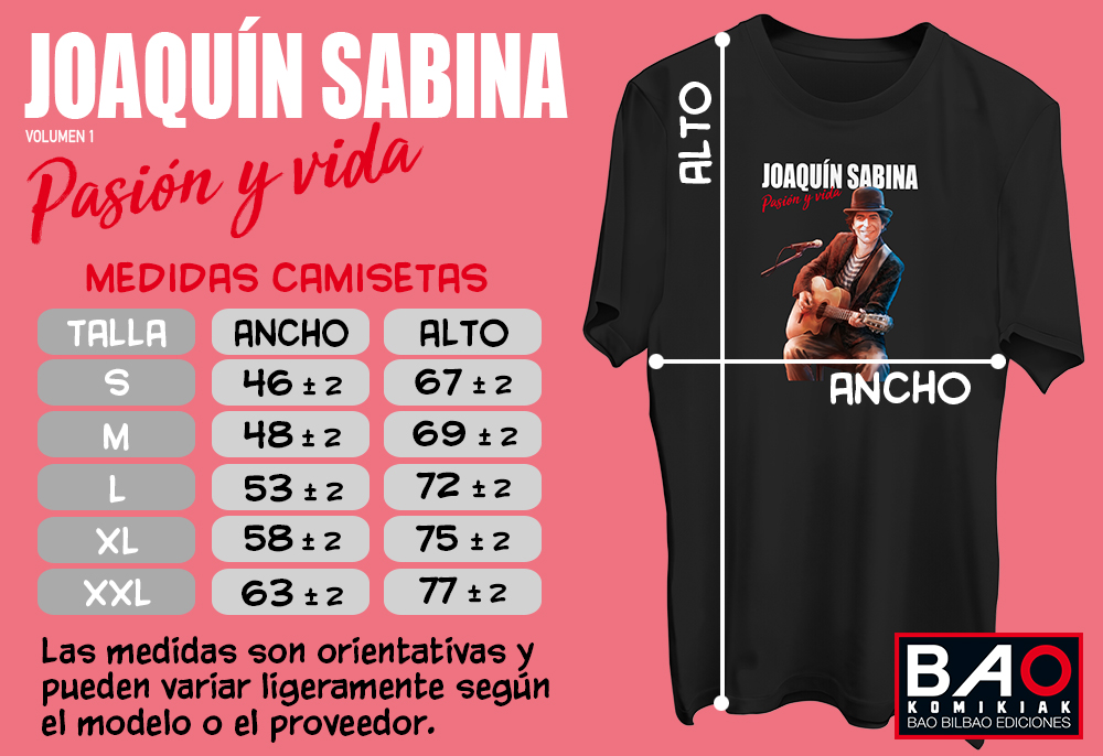 Incluye la novela gráfica de Joaquín Sabina. Pasión y vida (35€) y una camiseta de regalo y ocho postales exclusivas de edición limitada. No incluye gastos de envío.